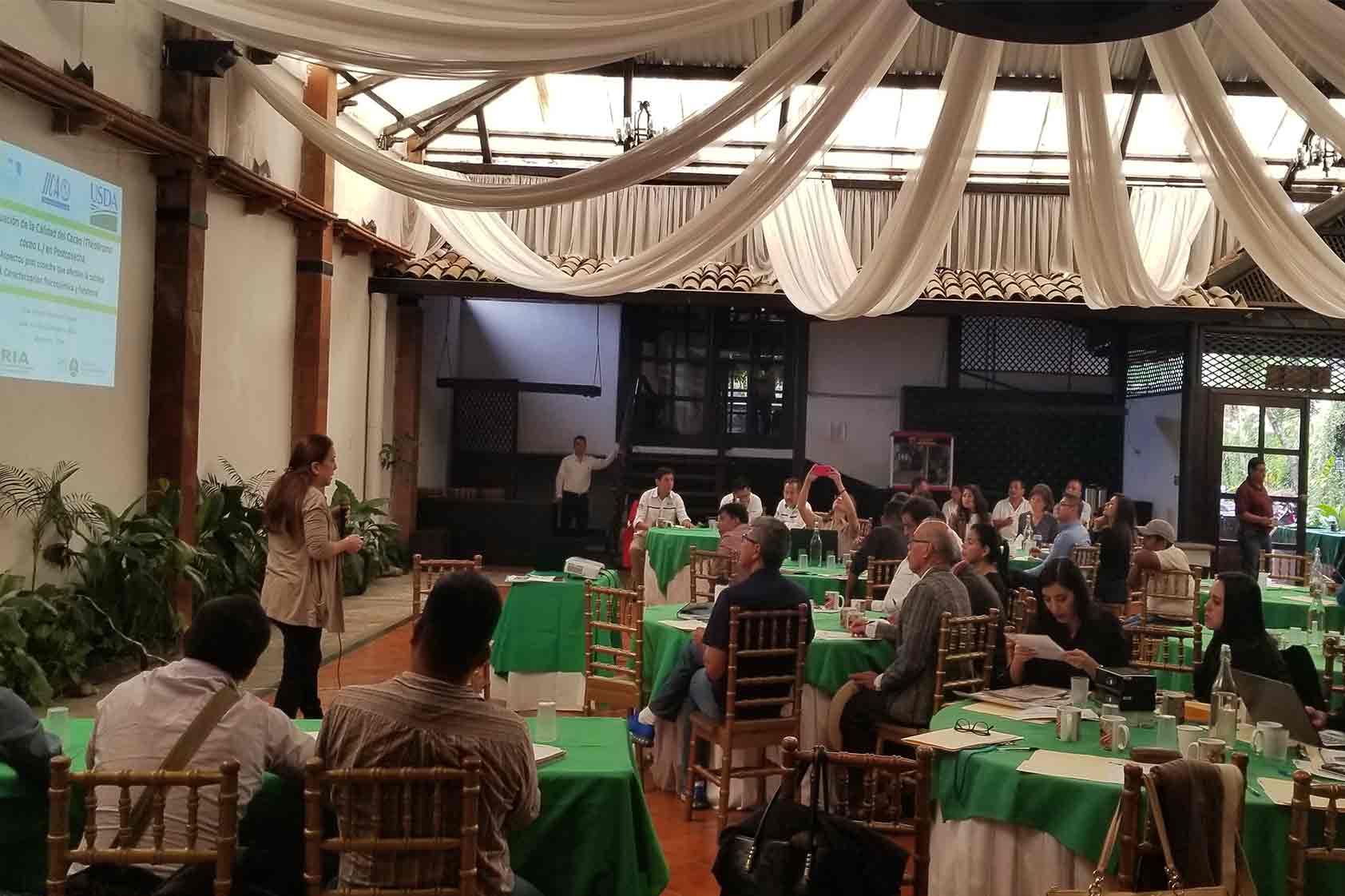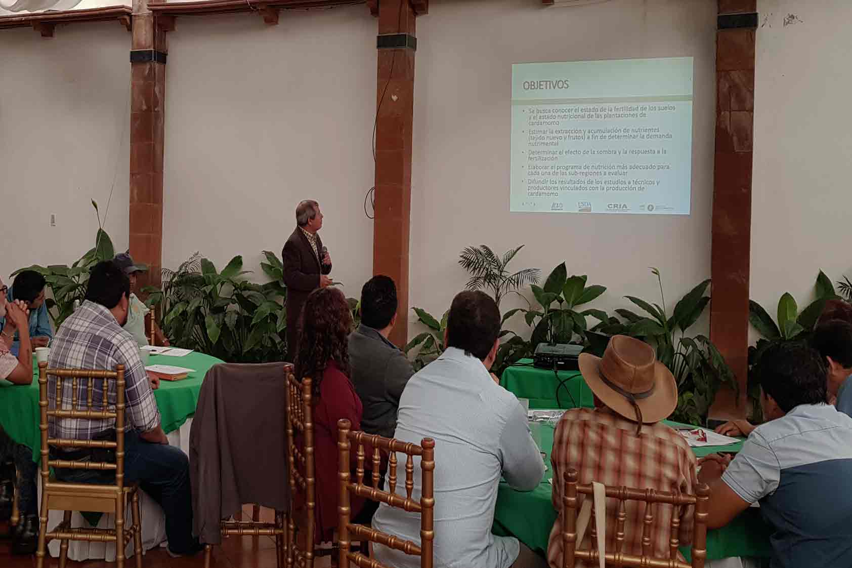 Los ponentes del CEAA se reunieron en la ciudad de Cobán, Alta Verapaz, con investigadores de otras organizaciones que también realizan estudios vinculados a las cadenas de cacao y cardamomo. En esta ocasión, se presentaron resultados sobre genética, botánica, nutrición vegetal, protección vegetal, biodiversidad, productividad, calidad de la cosecha, beneficiado y secado, y desarrollo de productos como parte de la transformación secundaria.