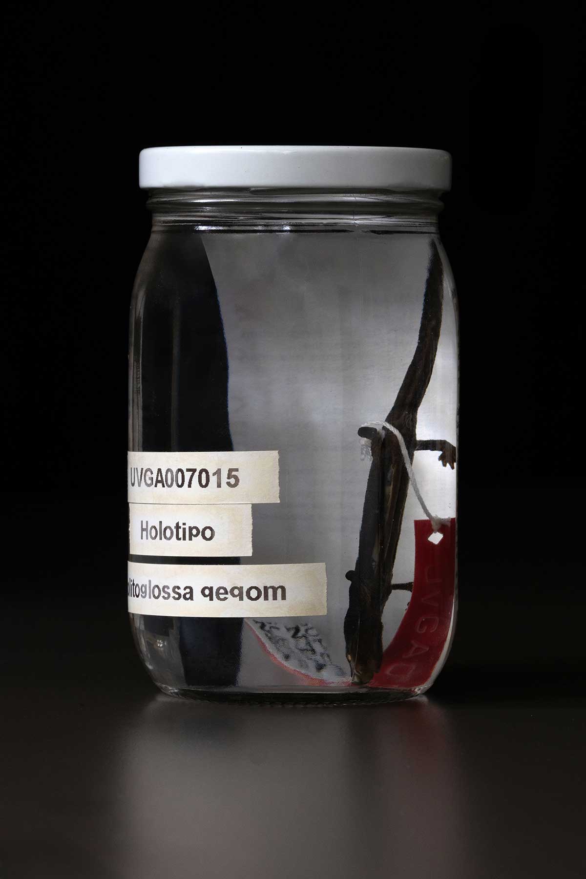 - Especímenes Notables: Entre los especímenes más importantes se encuentran los Holotipos y Paratipos de varios organismos, principalmente anfibios. Tal es el caso de la salamandra Bolitoglossa qeqom