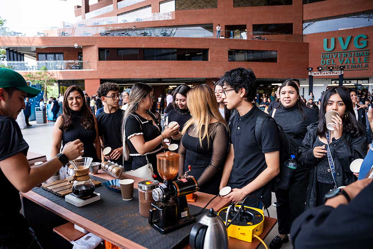 La UVG Coffee Party +Career Showcase incluyó estaciones de café donde los asistentes disfrutaron de distintas preparaciones de café. También conocieron sobre la producción de galletas a cargo de estudiantes de Ingeniería en Ciencias de Alimentos y visitaron emprendimientos relacionados con la industria del café a cargo de egresados.