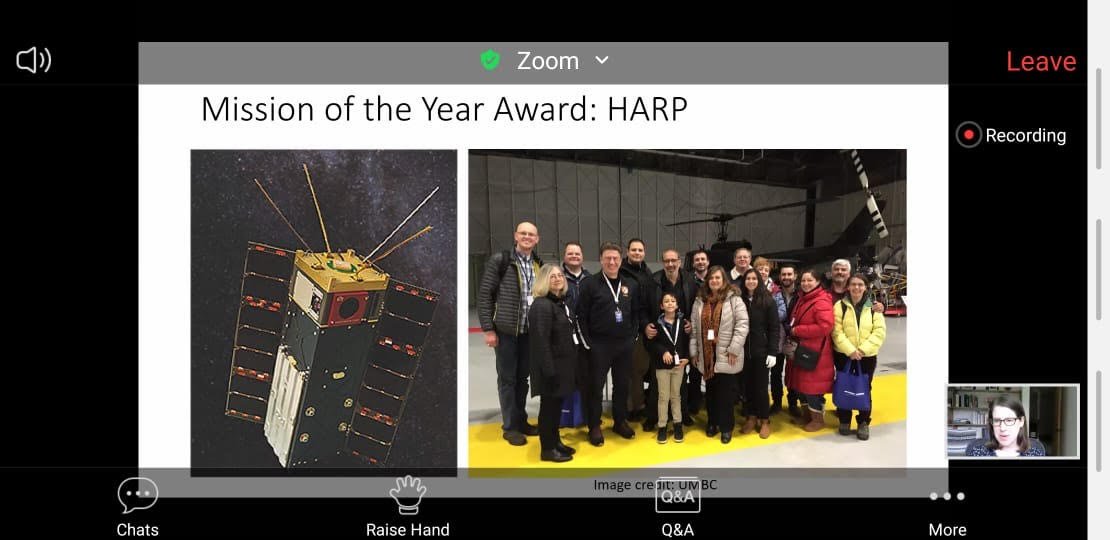 La votación estuvo abierta al público el 3, 4 y 5 de agosto de 2020. En Guatemala, vivimos la convocatoria a votar con mucho compromiso. El proyecto ganador de la “Misión del Año – Pequeños Satélites” fue el proyecto HARP, de la Universidad de Maryland. Esta misión se compone de un CubeSat 3U (Quetzal-1 es un 1U) y tiene como objetivo estudiar las partículas microfísicas en la atmósfera. El proyecto HARP contó con financiamiento de la NASA.