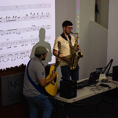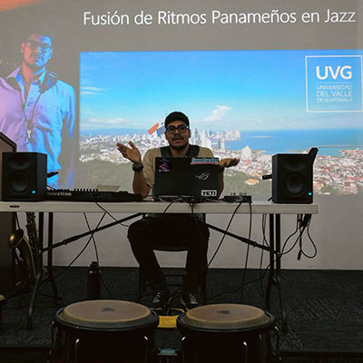 Diego Flores, un joven DJ y productor guatemalteco que radicó en EE.UU. Panamá e incluso Tanzania, dictó el taller Fusión Jazz y Música electrónica. Actualmente es estudiante de la Licenciatura en Composición y Producción Musical, de Universidad del Valle de Guatemala (UVG).