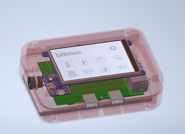 El dispositivo biomédico entra en acción en este proceso al hacer más eficientes las mediciones de signos vitales. Por ejemplo, mide a elección signos como la temperatura, el oxígeno y la frecuencia cardiaca. Además, su diseño reduce la necesidad de usar o transportar varios equipos diferentes y permite a las personas un uso más sencillo y rápido.