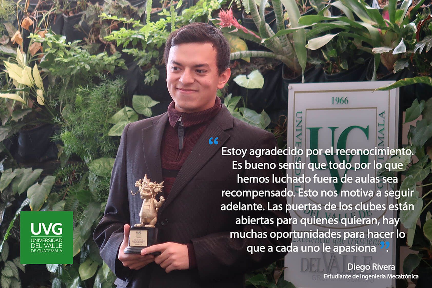 Boggdan Josué Barrientos, estudiantes de Ingeniería Mecatrónica, ha sido un destacado deportista a nivel nacional. Fundador del Club de Tenis de Mesa de UVG y miembro de asociaciones estudiantiles durante varios años.