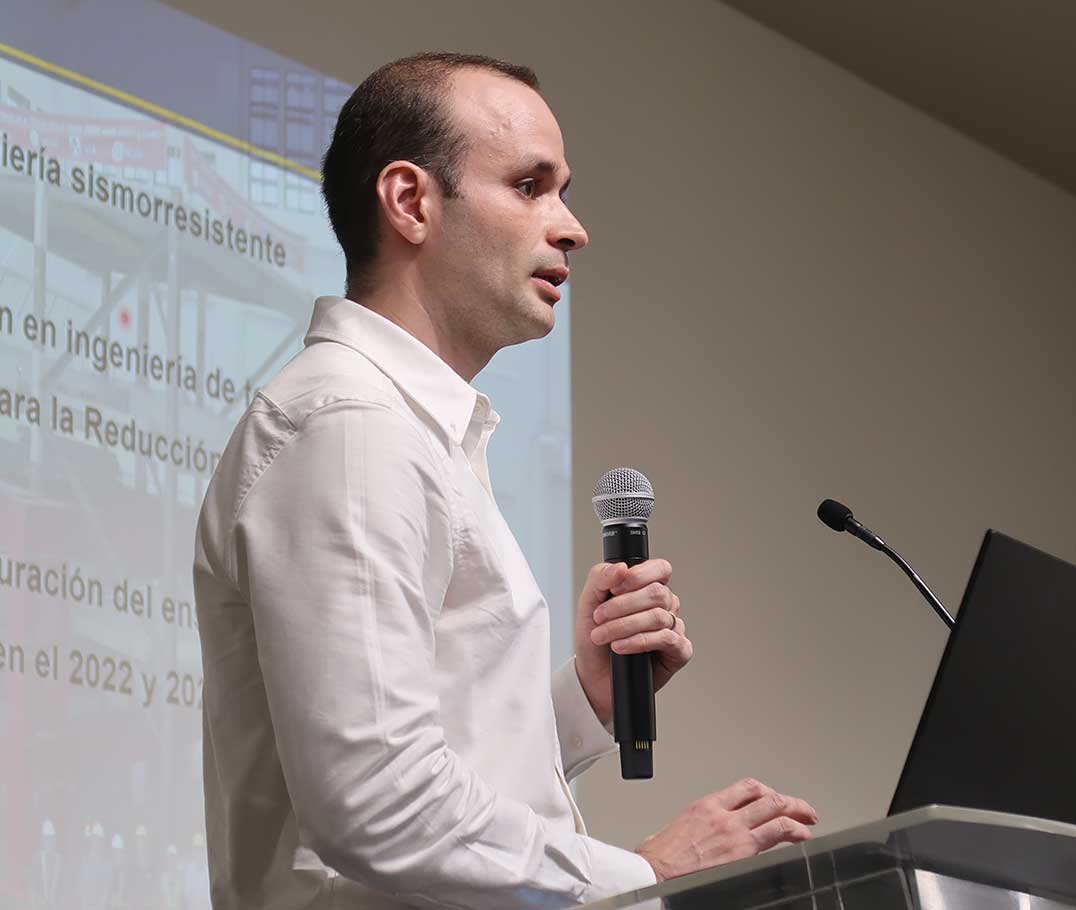 “Mi investigación se centró en un nuevo sistema de resiliencia sísmica para edificios. Hemos realizado ensayos en estructuras a escala real de tres niveles y los resultados son prometedores”, M. Sc. Álvaro Córdova.