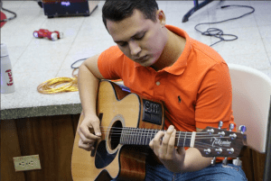 Los alumnos de primer año de la nueva licenciatura en Composición y Producción Musical de la UVG desarrollaron piezas musicales como parte de su proyecto final. Los jóvenes artistas tuvieron la opción de elegir cualquier género musical para crear su canción. Se dividieron en grupos de tres a cinco integrantes, en donde cada uno tocó diferentes instrumentos mientras interpretaban las obras que crearon.