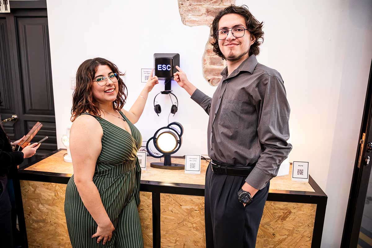 Segundo lugar: Escape in the light, creado por Irenne Cruz, Nicole Mejía, Mónica Escobar y Diego Beltheton. La lámpara se destacó por su capacidad para generar ambientes cálidos y acogedores, combinando funcionalidad y estética en una propuesta innovadora.