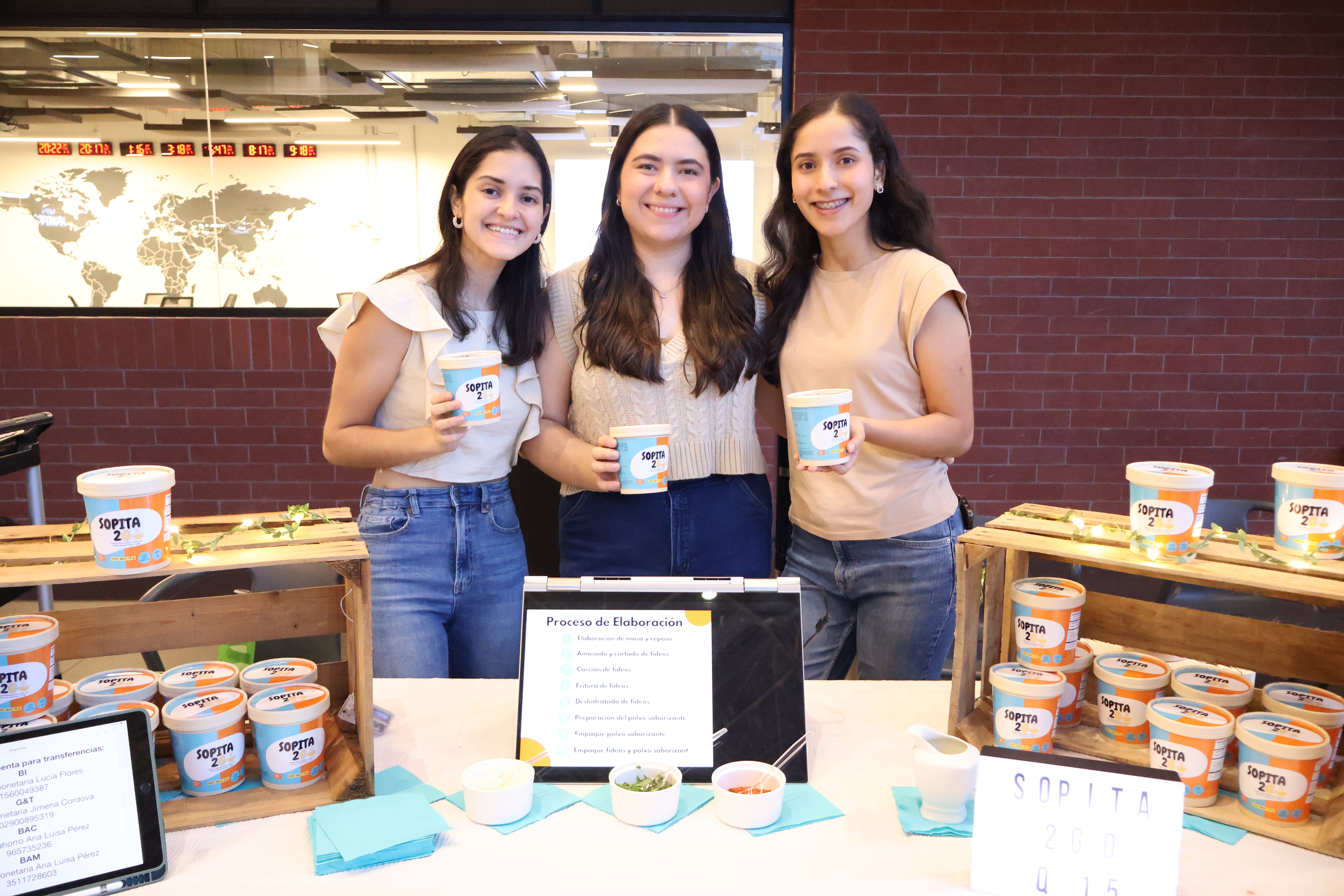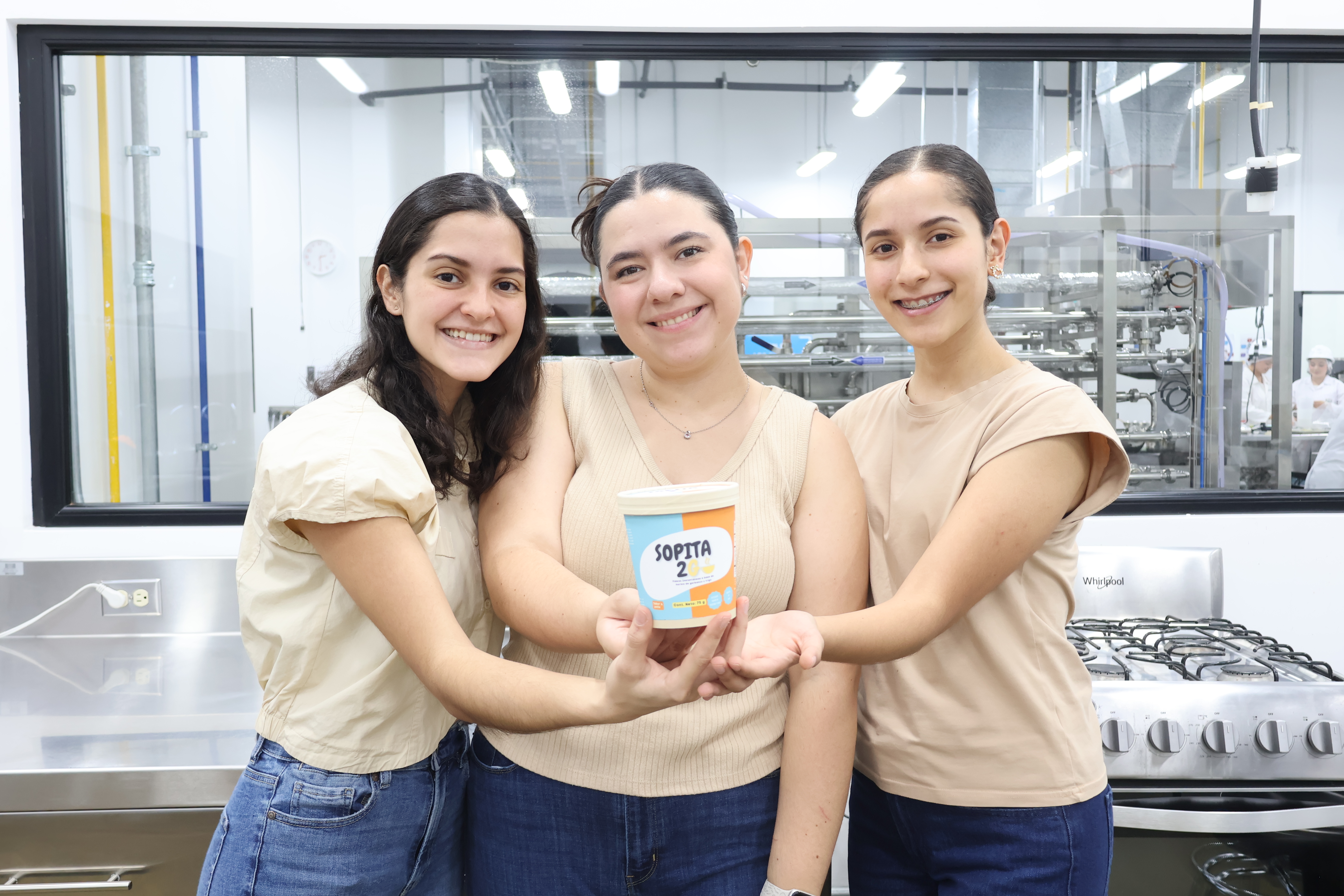 En quinto año, los estudiantes del curso Investigación y Desarrollo de Productos Nuevos presentaron proyectos listos para comercialización. El primer lugar fue para Sopita2Go, una sopa instantánea elaborada con fideos de harina de garbanzo y trigo, vegetales reales y bajo contenido de sodio. Lucía Flores, Jimena Córdova y Ana Luisa Pérez lideraron este desarrollo que ya cuenta con presencia en redes sociales.