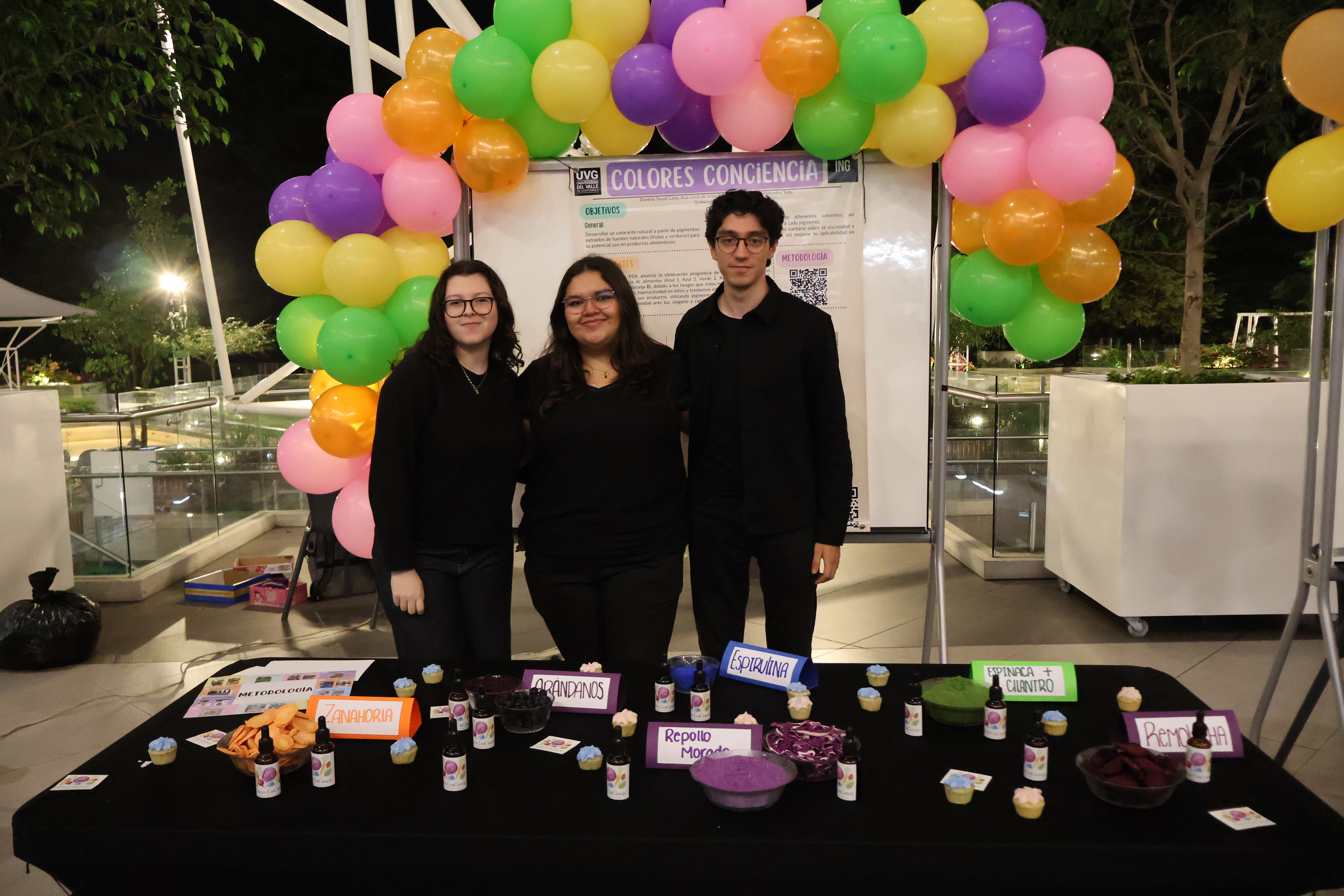 En la categoría de tercer año, los estudiantes del curso Química de Alimentos mostraron propuestas enfocadas en el análisis de ingredientes y sus aplicaciones. El primer lugar lo obtuvo el proyecto ColoresConCiencia, desarrollado por Lucía de León, Daniela Tarud y Óscar Méndez. Este grupo elaboró y analizó colorantes naturales a partir de pigmentos extraídos de frutas y vegetales liofilizados.