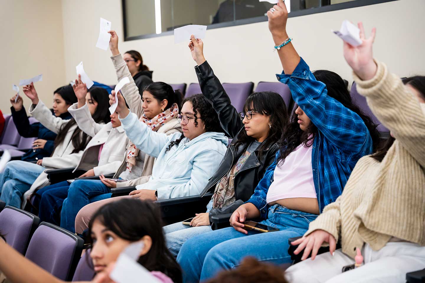 “Estas pláticas buscan llevarlos a la reflexión del por qué están aquí y qué desean lograr en la universidad. Este es el inicio de su carrera profesional y, por ende, es ideal que los acompañemos a buscar la excelencia académica”, M. A. Maricruz Álvarez, decana del Colegio Universitario y Asuntos Estudiantiles.