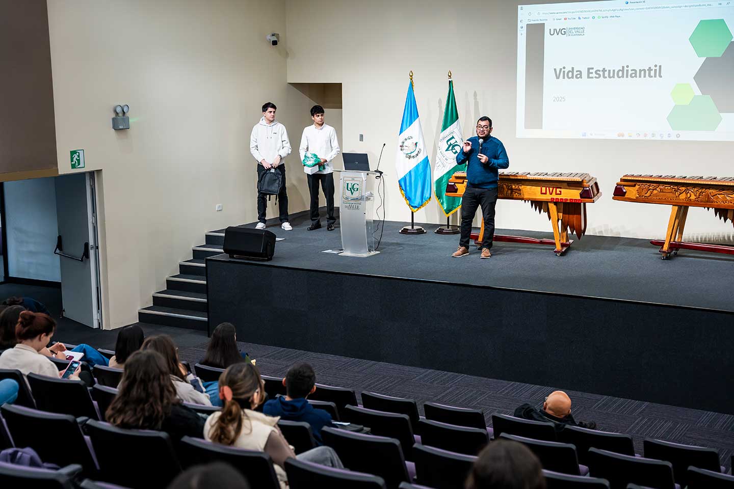 Además, se realizó una actividad de inducción en formato híbrido para los padres de familia. En la actividad participaron 275 familias que se conectaron en línea y otros 200 que asistieron. La actividad consistió en un panel organizado por Dirección de Estudios y estuvo integrado por Ph. D. Wendy Bellanger, directora del Centro de Excelencia para el Aprendizaje y la Docencia (CEAD), quien habló sobre la calidad docente. Luego, M. A. Angélica Rocha, directora de Innovación y Tecnologías para el Aprendizaje (DITA), expuso sobre los espacios y laboratorios del Centro de Innovación y Tecnología (CIT-UVG). Por último, M. A. Maricruz Alvarez habló de los servicios de apoyo a estudiantes. Haz clic en la galería para ver las fotografías.