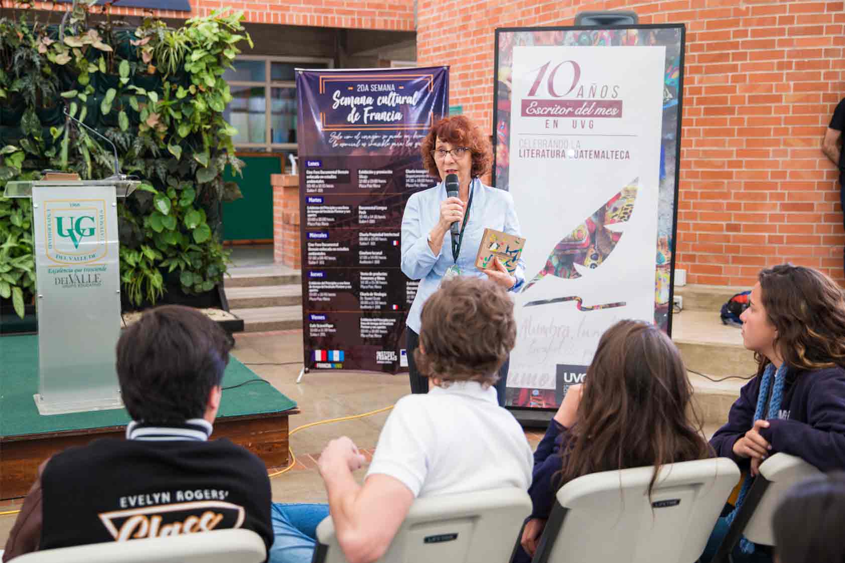 El escritor del mes es organizado por el Departamento de Comunicación y Letras desde 2008 y surge con el objetivo de promover la cultura de la lectura y promoción de la literatura guatemalteca en los estudiantes de primer año de todas las carreras.