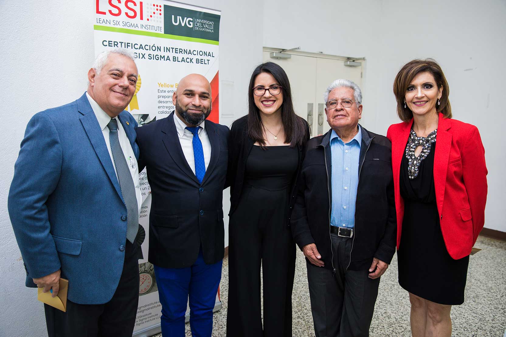 Los estudiantes junto a sus familiares y amigos fueron acompañados por la Lic. Ana Lucía Ortega, Directora Comercial de Centro América del Lean Six Sigma Institute, y el Ing. Estuardo Sierra, Director del Departamento de Ingeniería Industrial, quienes les entregaron en una ceremonia los diplomas que los certifica como expertos en distintos grados de Lean Six Sigma.