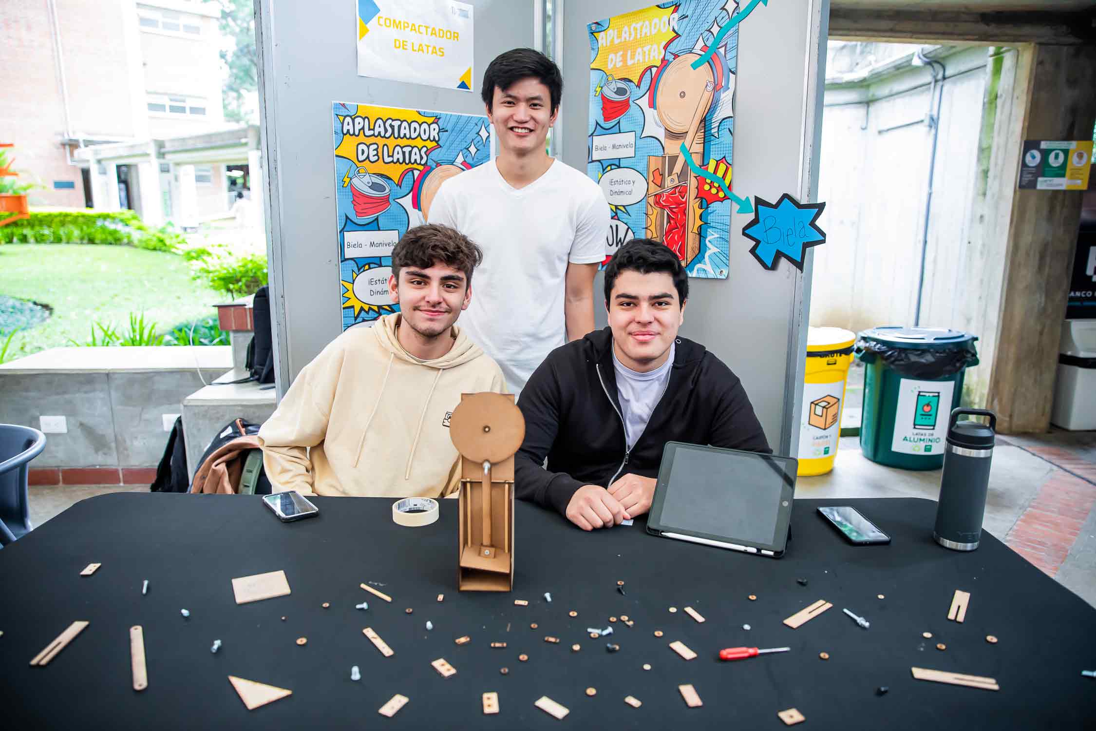 - Compactador de latas: Alex Guo, Julio Ramos y Alejandro Vásquez crearon este compactador a través del desarrollo de un mecanismo de biela y manivela.