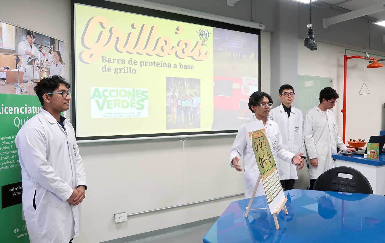 Los estudiantes de la Licenciatura en Química, Ángel Escobar, Josué Sartorelli, Erick Montenegro y Joshua Sánchez compartieron cómo procesaron y crearon las barras de proteína a base de grillo. Además, realizaron una encuesta para conocer el gusto y el interés de los consumidores por esta barra alimenticia. El objetivo es desarrollar una próxima producción y comercializarlo con el nombre de Grilloo’s.