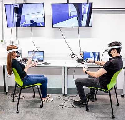 El Laboratorio de Realidad Virtual (VR) lleva a cabo el seguimiento de dos proyectos entre estudiantes de distintas carreras que utilizan realidad virtual para su construcción. Uno de ellos imita el entorno de una carreta de comida callejera para evaluar y mejorar la efectividad del espacio de producción, el proceso de preparación y tiempo de servicio. El segundo es una reproducción de una planta de ensamblaje de Nissan que implementa nuevas tecnologías.