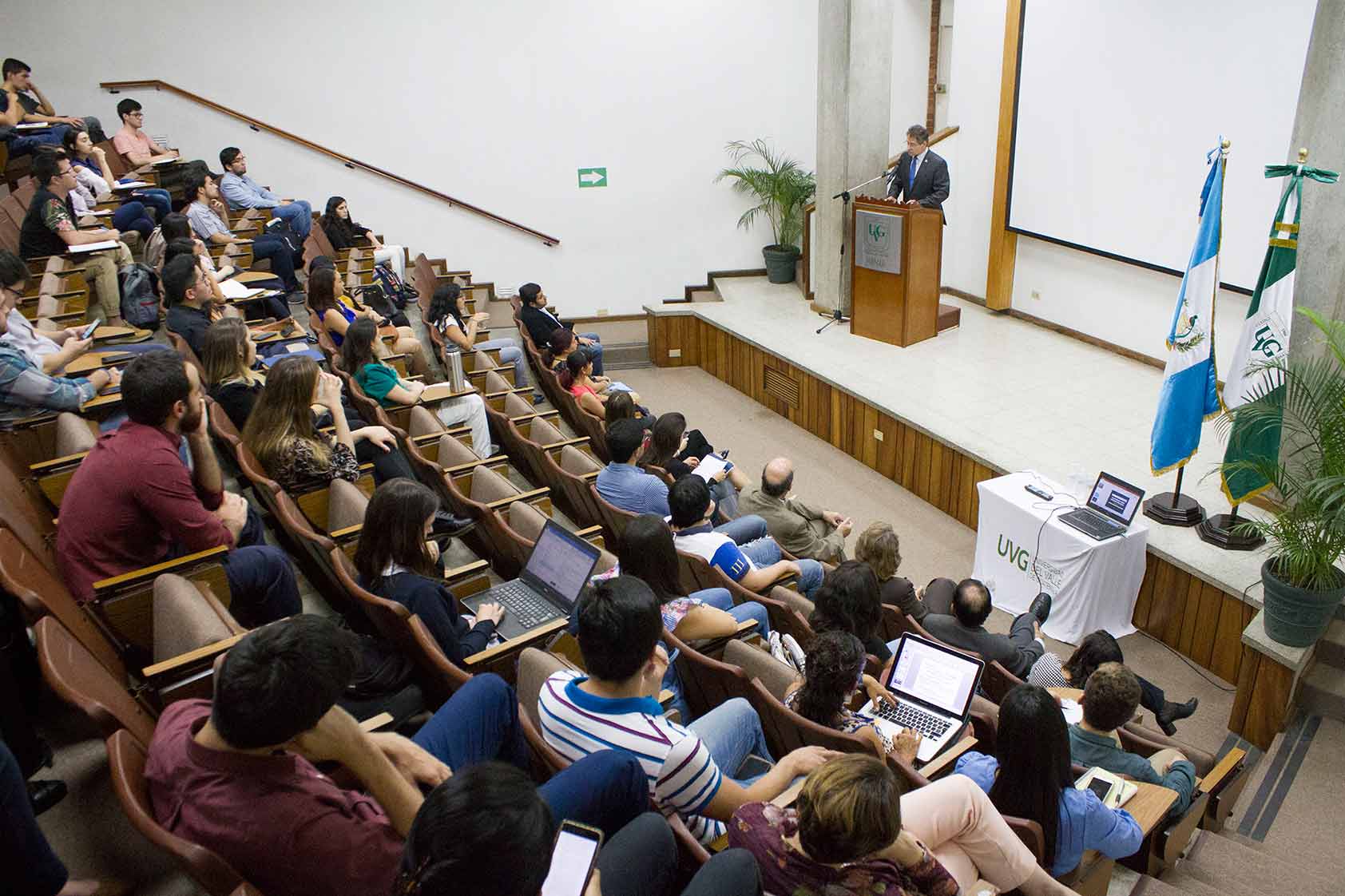 Al finalizar su intervención, el embajador invitó a Andrea Nájera, bióloga egresada de UVG, a compartir sus experiencias como becaria de AGCID en su país. La guatemalteca vivió cinco años en Chile, en donde estudió primero una Maestría en Ecología y Evolución y, luego, una Maestría en Ciencia Política.