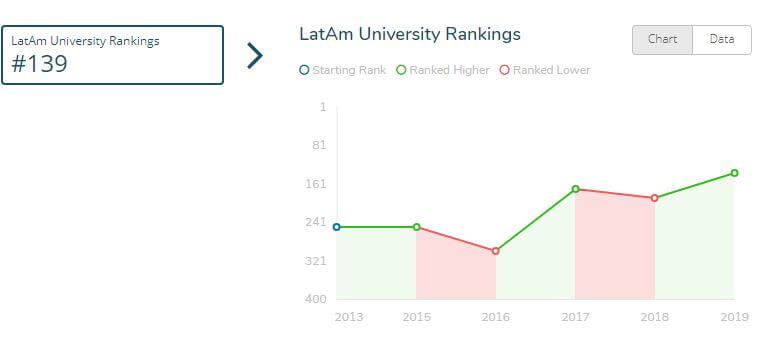 En el ranking Latinoamericano ocupamos la posición 139 de 400 universidades evaluadas. Este resultado significa el reconocimiento a nuestra tradición y compromiso con nuestra misión de desarrollar agentes de cambio que impacten a la sociedad, mediante experiencias educativas y de investigación centradas en las Ciencias y Tecnologías.