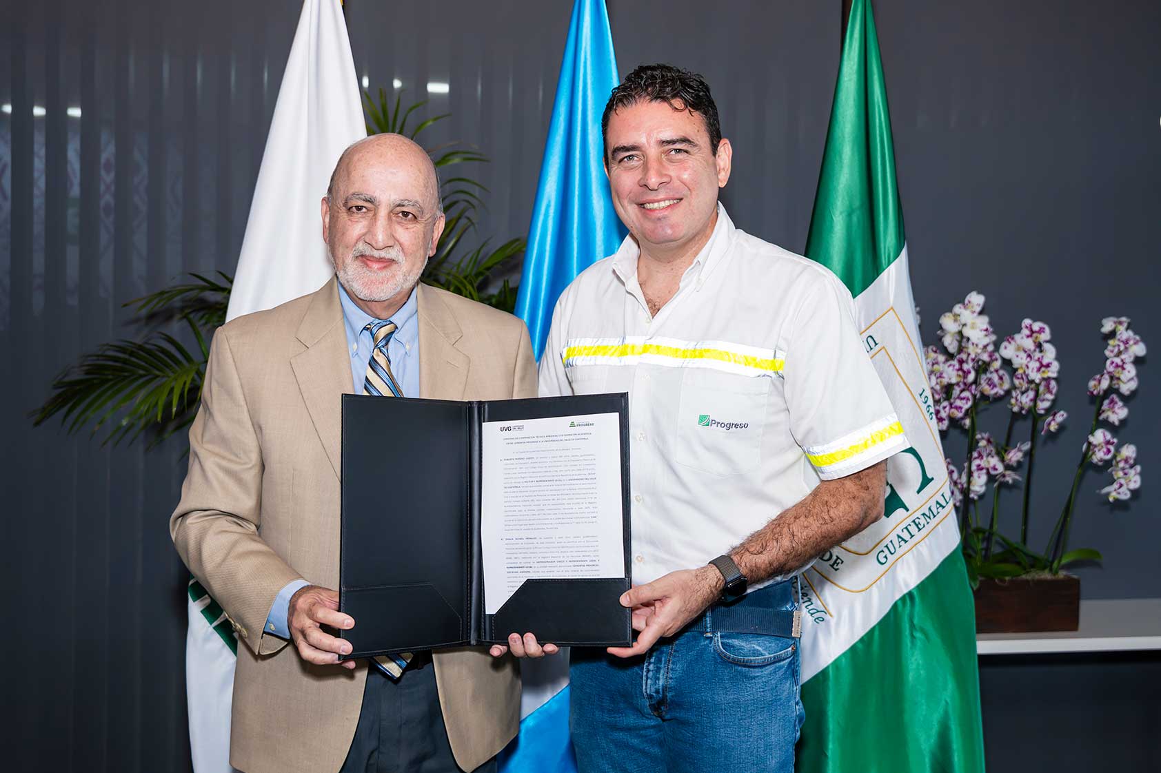 Por ello, UVG y Progreso firmaron un convenio de cooperación técnico-científica con una vigencia de cinco años, que busca generar soluciones reales a retos clave de Guatemala, como la sostenibilidad ambiental, la gestión del agua y el desarrollo de infraestructura resiliente.