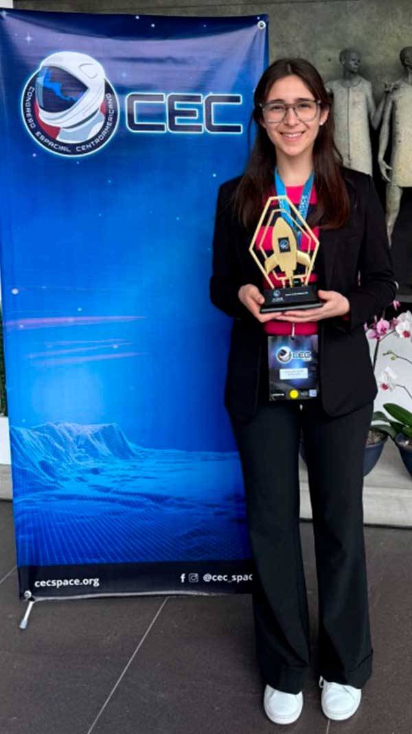 Gracias a su participación, Valeria fue premiada con el curso AST 101, una introducción a la ciencia y tecnología espacial. Este es un curso en línea del Instituto Internacional de Ciencias Astronáuticas (IIAS, por sus siglas en inglés). El premio también incluye un entrenamiento intensivo de cinco días en Florida, EE. UU., donde participará en simulaciones y actividades prácticas en el campo aeroespacial.