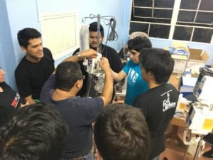 Por último, nos llevaron al salón de conferencias donde el personal colocó todo el equipo para que nosotros lo examináramos, esto abarcaba maquinaria más allá de los respiradores, se nos indicó cómo debía funcionar cada equipo. Entramos al Hospital con la mentalidad de arreglar por lo menos un aparato, ya que con este estaríamos ayudando a miles de personas. Realizamos el diagnóstico y reparación de alrededor de quince diferentes equipos, entre ellos bombas electrónicas de administración intravenosa y aspiradoras de flema. Todo esto gracias 16 estudiantes y el ingeniero Esquit.