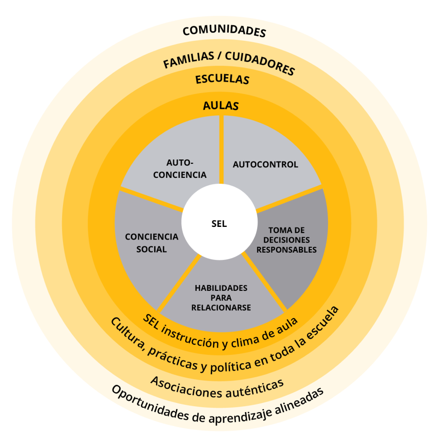 Por su parte, el Modelo Colaborativo para el Aprendizaje Académico, Social y Emocional (CASEL, por sus siglas en inglés) busca que el estudiante desarrolle cinco áreas de competencias en distintos escenarios: autoconciencia, autocontrol, conciencia social, habilidades para relacionarse y toma de decisiones responsables.