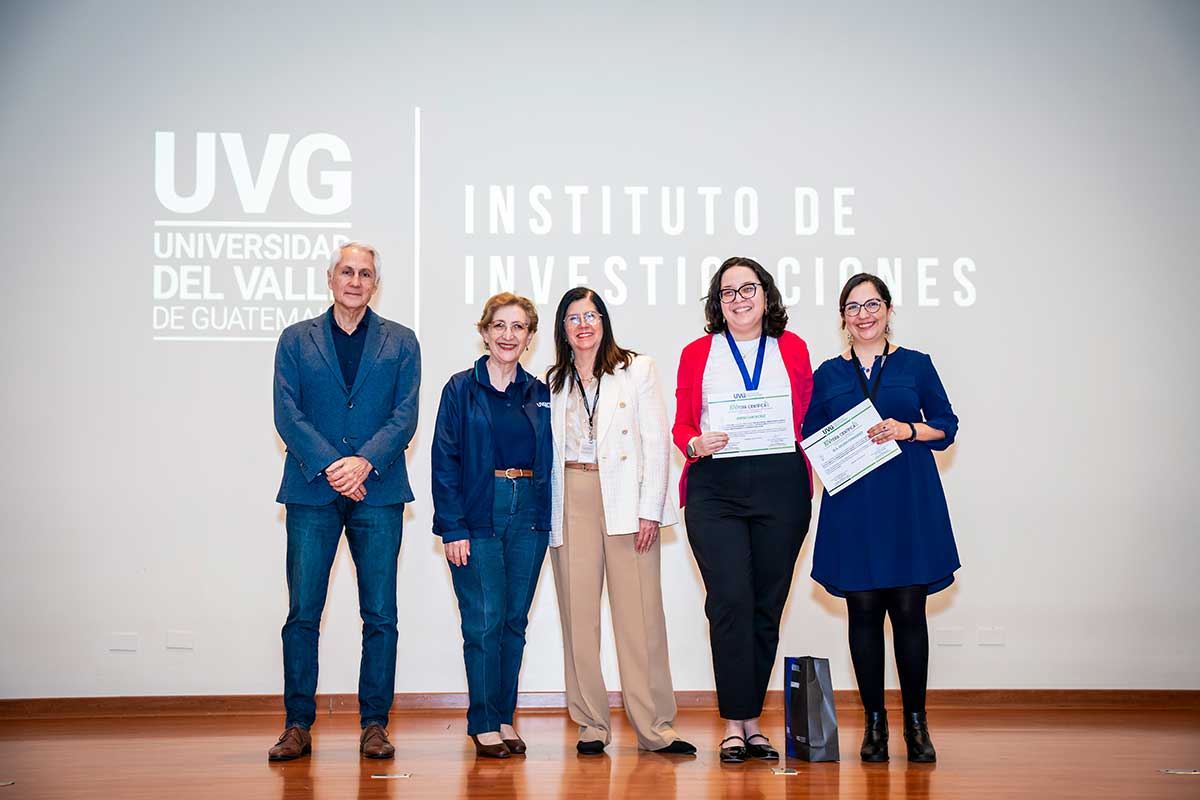 Primer lugar en la Categoría Trabajo de Graduación: Jimena Santa Cruz, con la asesoría de la Lda. Regina Fernández, investigó el “Síndrome de Burnout y calidad de vida de los religiosos y las religiosas de una vicaría de Guatemala”.